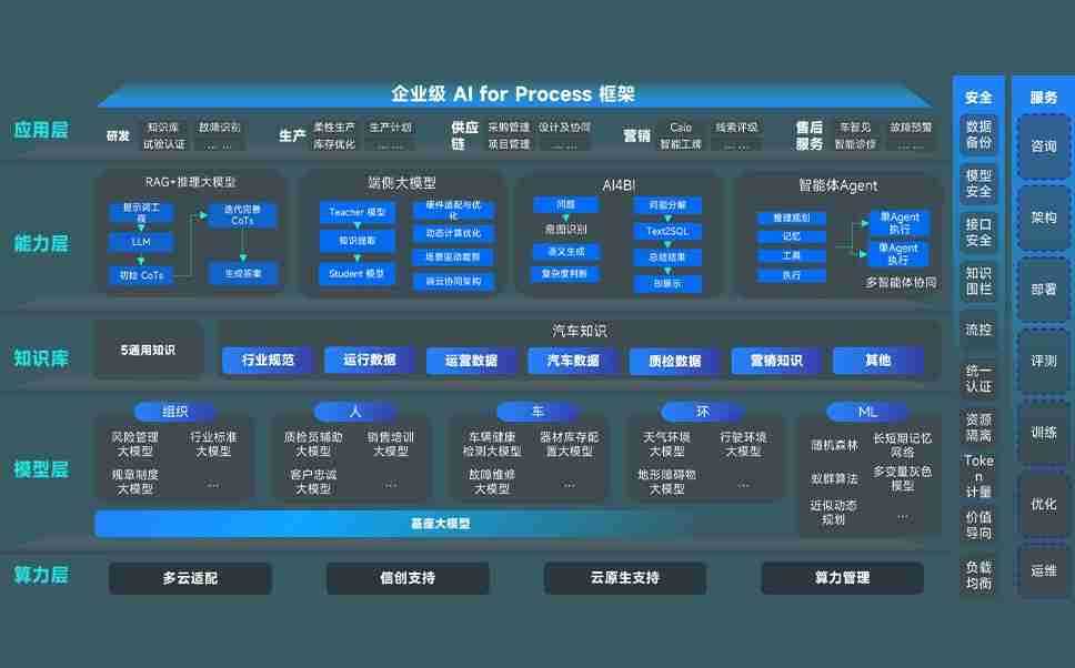 快盈VIII问学智车解决方案是一套基于AI技术的汽车行业智能化系统,,覆盖从底层算力到顶层AI应用的全栈方案。。。方案由算力层、、、模型层和应用层组成:算力层,,方案支持多种一体机配置,,,,具备云端灵活部署、、、多云适配以及动态优化计算资源的能力;模型层,,快盈VIII问学平台版提供了企业级AI应用一站式构建与管理平台,,,,支持基于后训练强化技术的汽车企业专属模型的训练、、评测和运营;应用层,,,快盈VIII问学DeepSeek版提供包括超级员工、、、智能招采、、智能营销、、、、智能客服、、、、AI for BI等一系列解决方案,,可助力汽车行业实现数字化转型,,,让管理更智能、、响应更敏捷。。。。